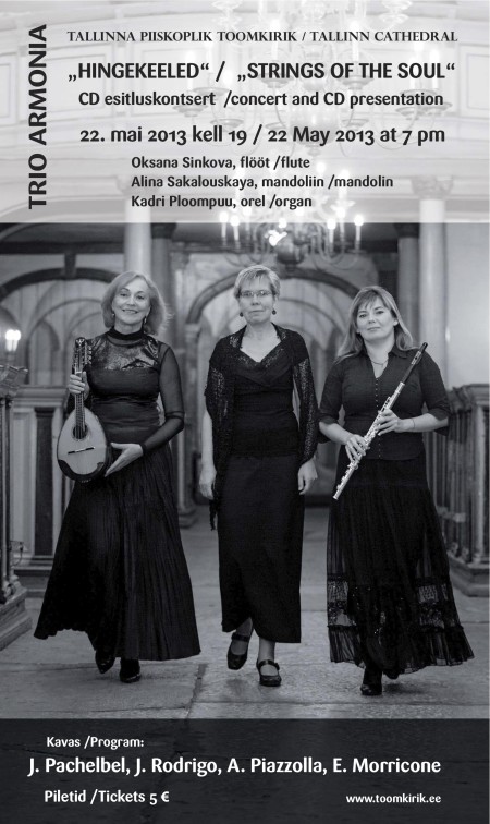 Kell 19 – KONTSERT sarjas „Käärkambri kammermuusika“ – Oksana Sinkova (flööt), Alina Sakalouskaya (mandoliin), Kadri Ploompuu (klaver, harmoonium).