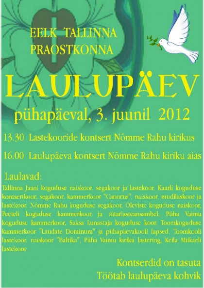 Täpsem info: 644 4140 või aadressil tallinna.toom@eelk.ee.