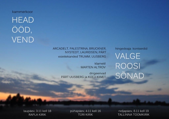 Kell 18.00 – Vesper. Teenivad abipraost Arho Tuhkru ja organist Ene Salumäe.