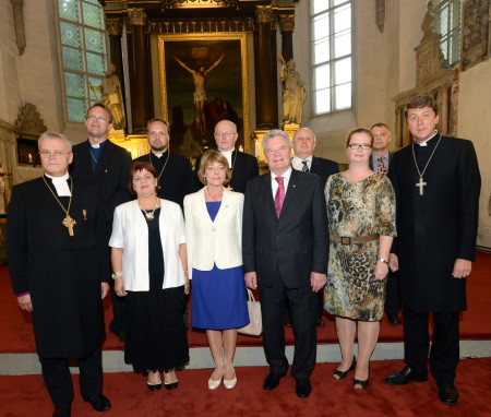 Saksamaa Liitvabariigi president Joachim Gauck külastas oma Eesti riigivisiidil Tallinna Piiskoplikku Toomkirikut ja kohtus peapiiskop Andres Põderi, kirikuvalitsuse ja Toomkoguduse juhtidega. Tallinna Piiskopliku Toomkoguduse õpetaja Urmas Viilma tutvustas kiriku ja koguduse ajalugu. Kohtumisel toomkirikus räägiti palju ühisest ajaloolisest pärandist ja Eesti-Saksa sidemetest. Assessor Tiit Salumäe tutvustas praegu Saksamaal elavate eestlaste vaimulikku teenimist ja sõpruskoguduste omavahelisi sidemeid. Peatuti ka Tallinna Toomkooli ajalool ja tänasel päeval. Kohtumisel peatuti pikemalt okupatsiooniaja uurimisel, kristlike väärtuste hoidmisel, tänapäeva väljakutsetel ja koostööl, mida riigid ja kirikud saavad ühises koostöös teha: „Te lõpetate oma raamatu „Vabadusest” mõttega, et ühiskond peaks teostama ja arendama vabadust tolerantsuse, väärtuspõhisuse ja ennekõike armastuse alusel, unustamata, et vabadus tähendab täiskasvanud inimesele ka vastutust,“ ütles peapiiskop. „ Vajame ühiskonda, mis oleks vabanenud mitte ainult mineviku ohtudest vaid suudaks sellised ohte vältida ka siis, kui need ilmuvad uuel ja rafineeritumal kujul,“ toonitas peapiiskop Põder. President tänas peapiiskoppi ja soovis oma külaskäiguga avaldada austust neile inimestele, kes on rasketel aegadel kannatanud ja jäänud oma õilsatele põhimõtetele kindlaks. Peapiiskop Andres Põder, kes pälvis Saksamaa Liitvabariigi Teeneteordeni Suure Teeneteristi tähega, tänas presidenti kõrge riikliku autasu eest. President Joachim Gauck ja proua Daniela Schadt tegid sissekande toomkiriku külalisteraamatusse. Soojal ja sõbralikul kohtumisel saatsid peapiiskop Andres Põderit abikaasa Marje Põder, assessor Tiit Salumäe, toomkoguduse õpetaja Urmas Viilma koos abikaasa Egle Viilmaga, Saksa Lunastaja koguduse õpetaja Matthias Burgardt, abipraost Arho Tuhkru, toomkoguduse juhatuse esimees Indrek Treufeldt ning aseesimees Jüri Ehasalu. Külaliste auks toimus tervituskontsert, kus musitseerisid organistid Andres Uibo ja Kadri Ploompuu, viiuldaja Mari-Liis Uibo ning kammerkoor “Collegium Musicale” dirigent Endrik Üksvärava juhatusel.