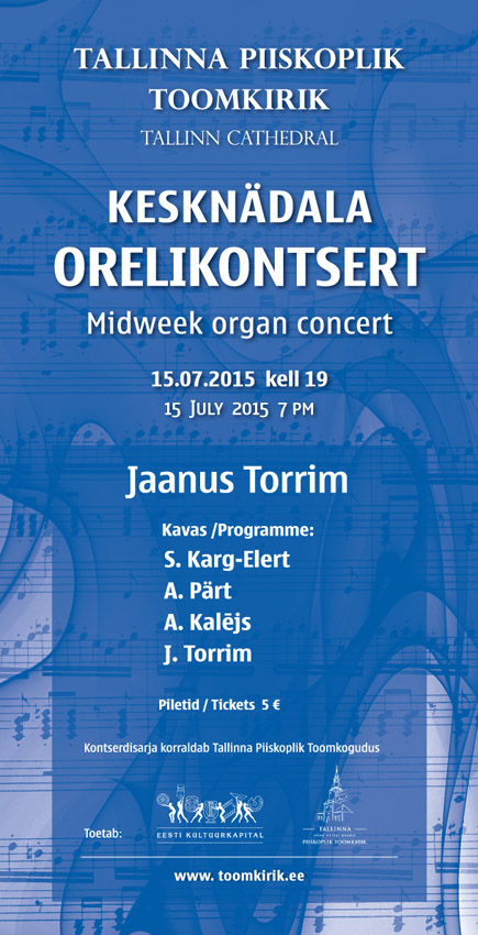 Kolmanda kontserdi kesknädala orelikontsertide sarjas annab organist ja helilooja, Pärnu Eliisabeti koguduse peaorganist Jaanus Torrim. Tema esituses saab kuulata nii romantilist kui kaasaegset orelimuusikat, sealhulgas tema enda heliteost.