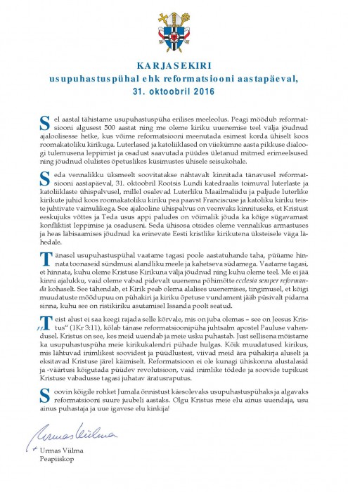 Paljudes kirikutes tähistatakse tänavu Porvoo ühisavalduse allkirjastamise 10. aastapäeva. EELK ühineb nende kirikutega, kes sel aastal tänumeeles annavad tunnistust ühest 20. sajandi haruldasest saavutusest kristliku ühtsuse teel.