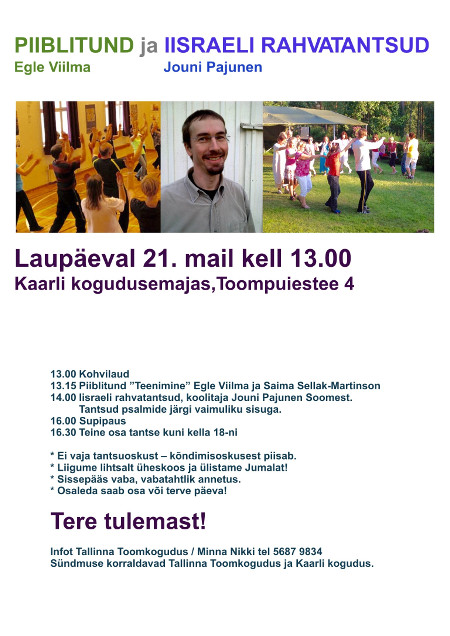 Posted in Uncategorized | PIIBLITUND ja IISRAELI RAHVATANTSUD, Laupäeval 21. mail kell 13.00 Kaarli kogudusemajas, Toompuiestee 4 kommenteerimine on välja lülitatud