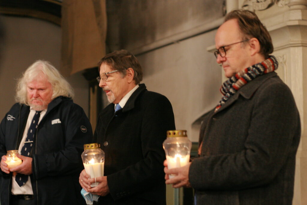 Merelaevanduse veteranide klubi esimees Alexander Karaulov Meremuuseumi direktor Urmas Dresen , Eesti vabariigi välisministeeriumi töötaja Jüri Trei, jahtlaeva „Bellingshauseni“ meeskonna liige Tiit Pruuli Toomkoguduse juhatuse liige Jüri Kraftfoto autor: Arho Tuhkru