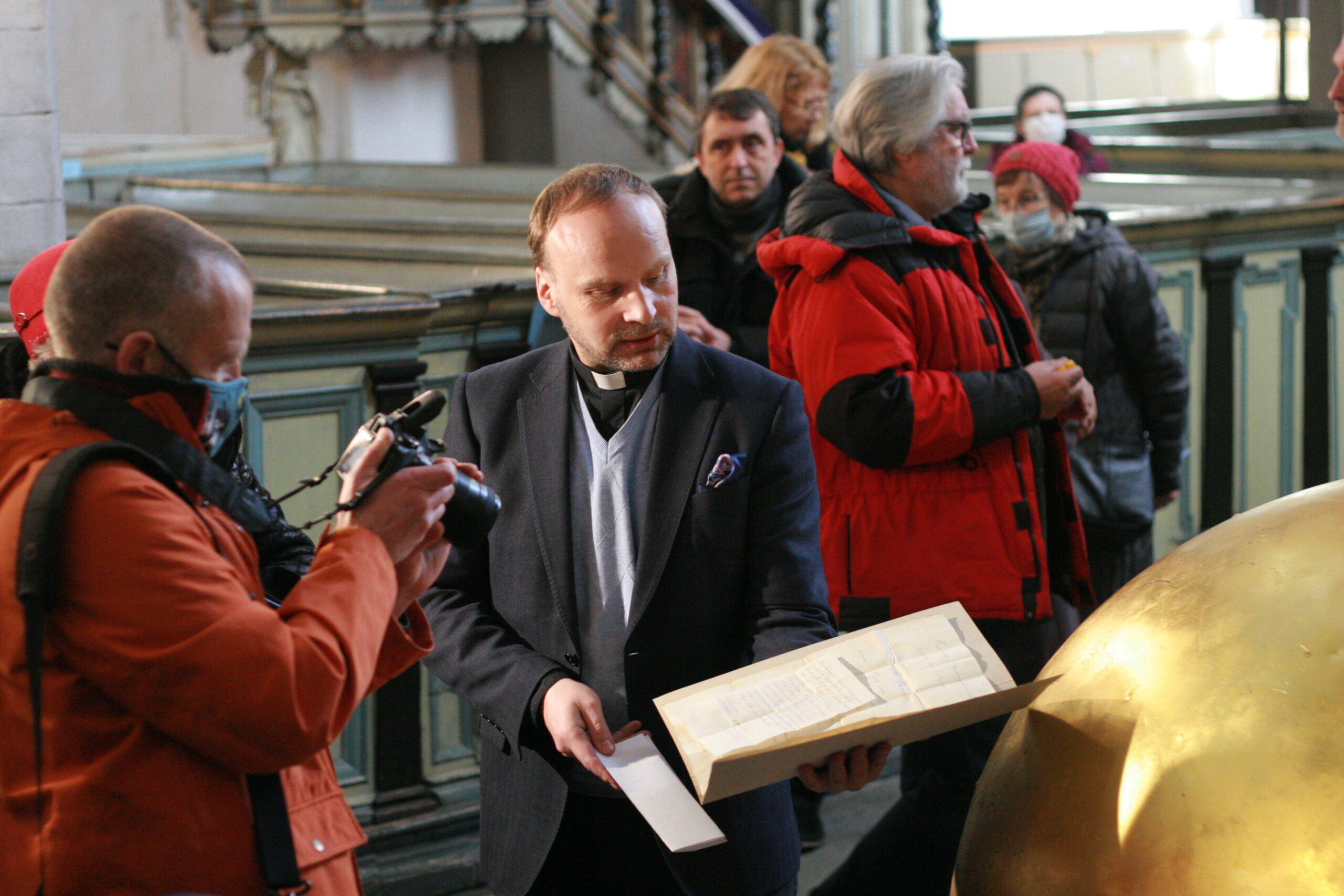 „Toomkiriku tornikiivri seisukord on aasta-aastalt halvenenud, sadevee läbijooksud suurenenud,“ rääkis Tallinna Toomkoguduse õpetaja Arho Tuhkru. „Toomkirikul on restaureerimisprogramm, et kirik tervikuna korda teha. Alustasime katusest, mis on hoone säilimise seisukohast kõige olulisem. Töid alustasime jaanuari viimasel nädalal ning loodame restaureerimisega lõpule jõuda augustikuu jooksul. Loomulikult võib katuse avamisel ette tulla üllatusi, väljastpoolt kõike ei näe. Peale pleki eemaldamist hinnatakse ka tugikonstruktsioone, kas need vajavad plommimist.“