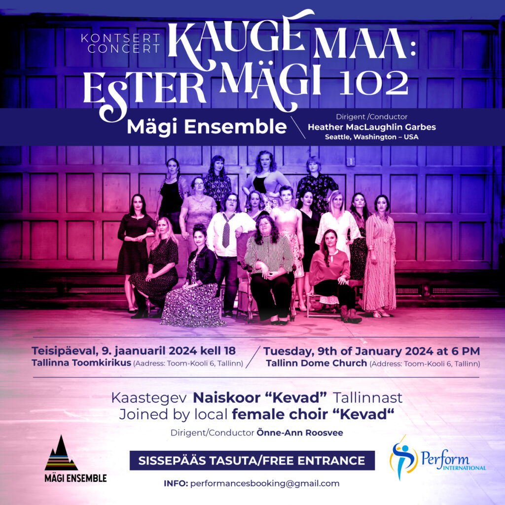 Kontserdil esineb professionaalne vokaalansambel Mägi Ensemble Seattle’ist USA-st, kes on pühendunud eesti, läti ja leedu koorimuusika tutvustamisele. Ansambel esitab ja salvestab nende maade muusikat ning propageerib Balti naisheliloojate uusi kooriteoseid. Nende visioon on kasutada muusika jõudu kogukonnaga ühenduse loomiseks ja jätkata kultuuripärandi tähistamist kunsti kaudu. Nad juhivad tähelepanu väärtustele nagu kultuuriline mõistmine, kogukond, kvaliteet ja pühendumus.