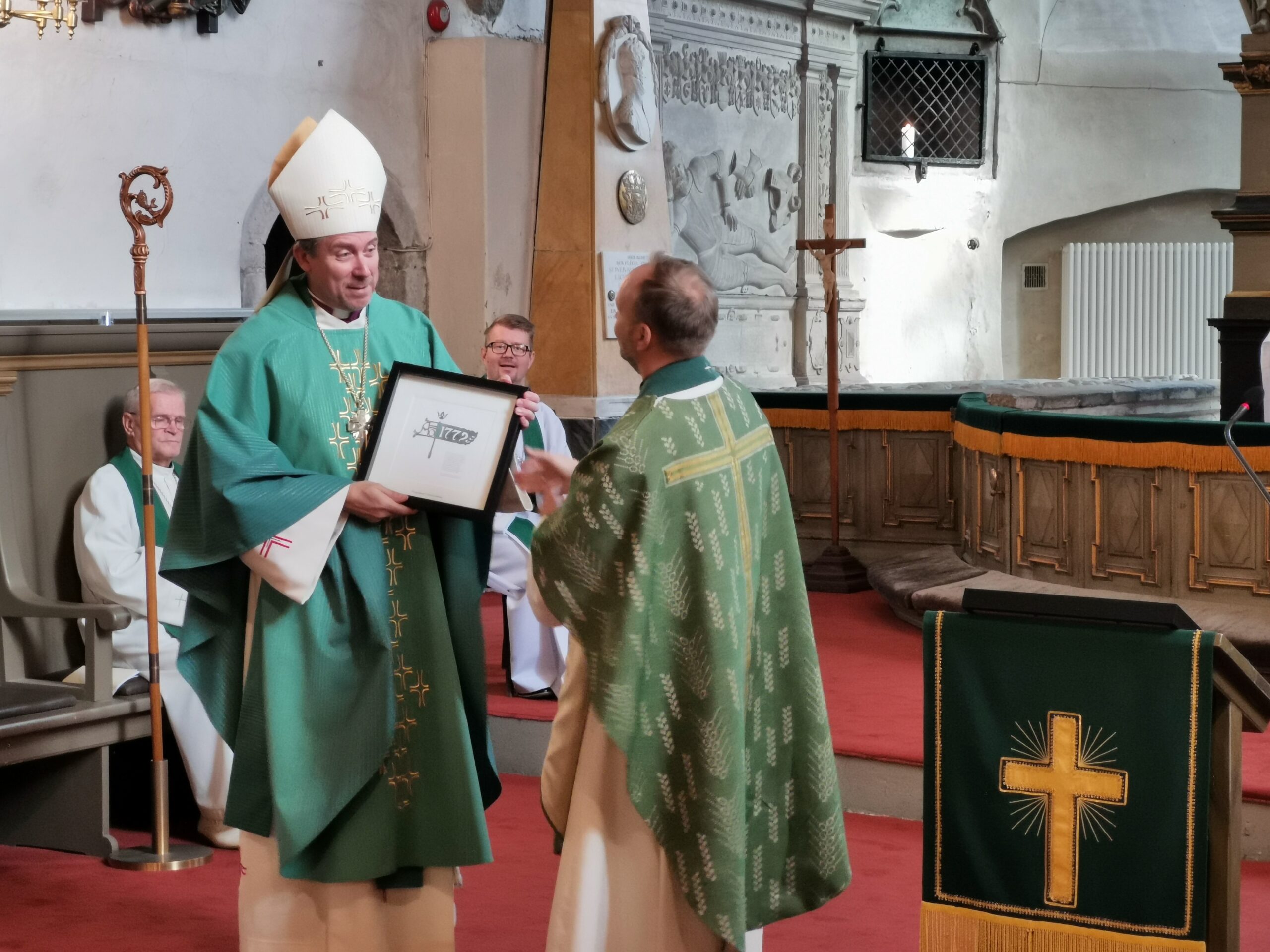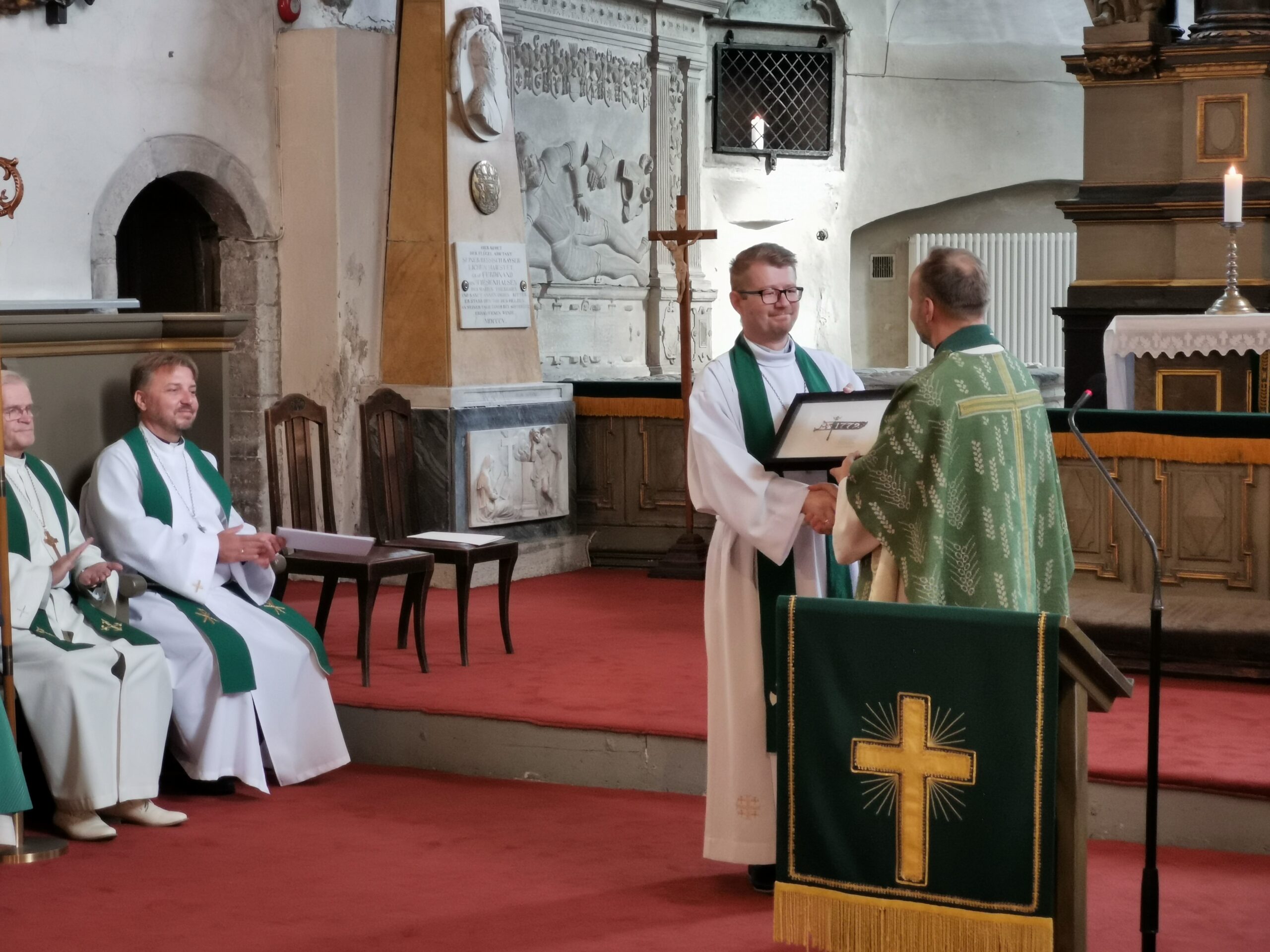 Tallinna Piiskopliku Toomkoguduse õpetaja Arho Tuhkru andis katedraalkiriku ülemkarjasele Urmas Viilmale ja Tallinna toomkiriku abiõpetajale üle sümboolsed kingitused koguduselt – pildid kodukiriku tuulelipust, mis suunda näitab. Teised Tallinna toomkirikus pühitsetud vaimulikud said tähtpäeva puhul kaunid sügisõied.