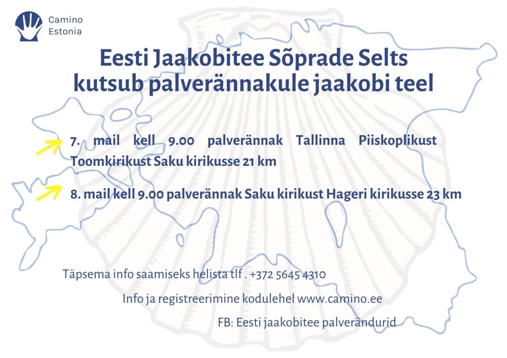 8. mail alustavad rändurid kell 9.00 liikumist Saku Toomase kirikust Hageri Lambertuse kiriku suunas (23 km).