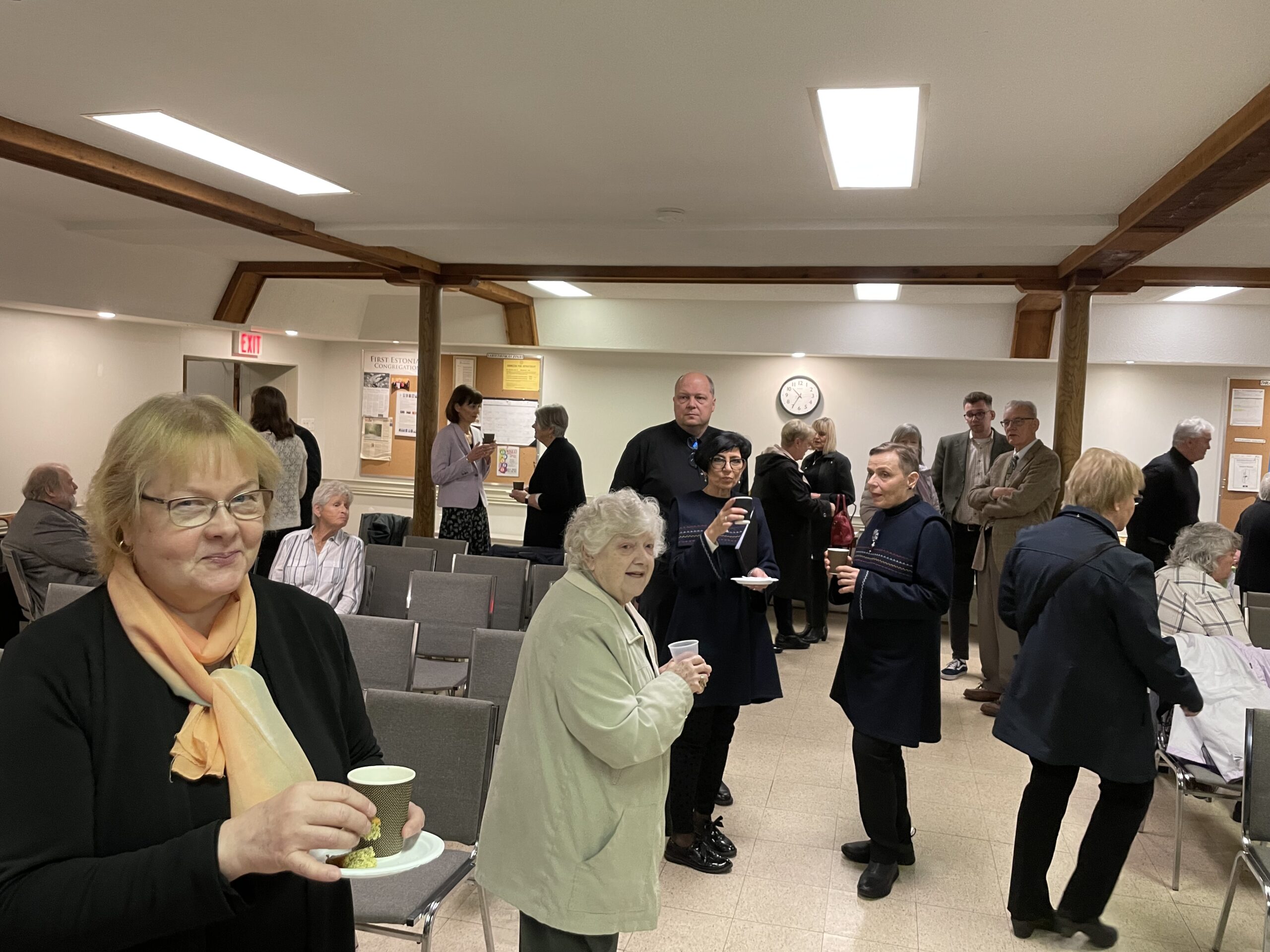 Hamiltoni kiriku sisevaade koguduse jumalateenistuse ajalHamiltoni kiriku kohvilaudHamiltoni kirikus esinemine