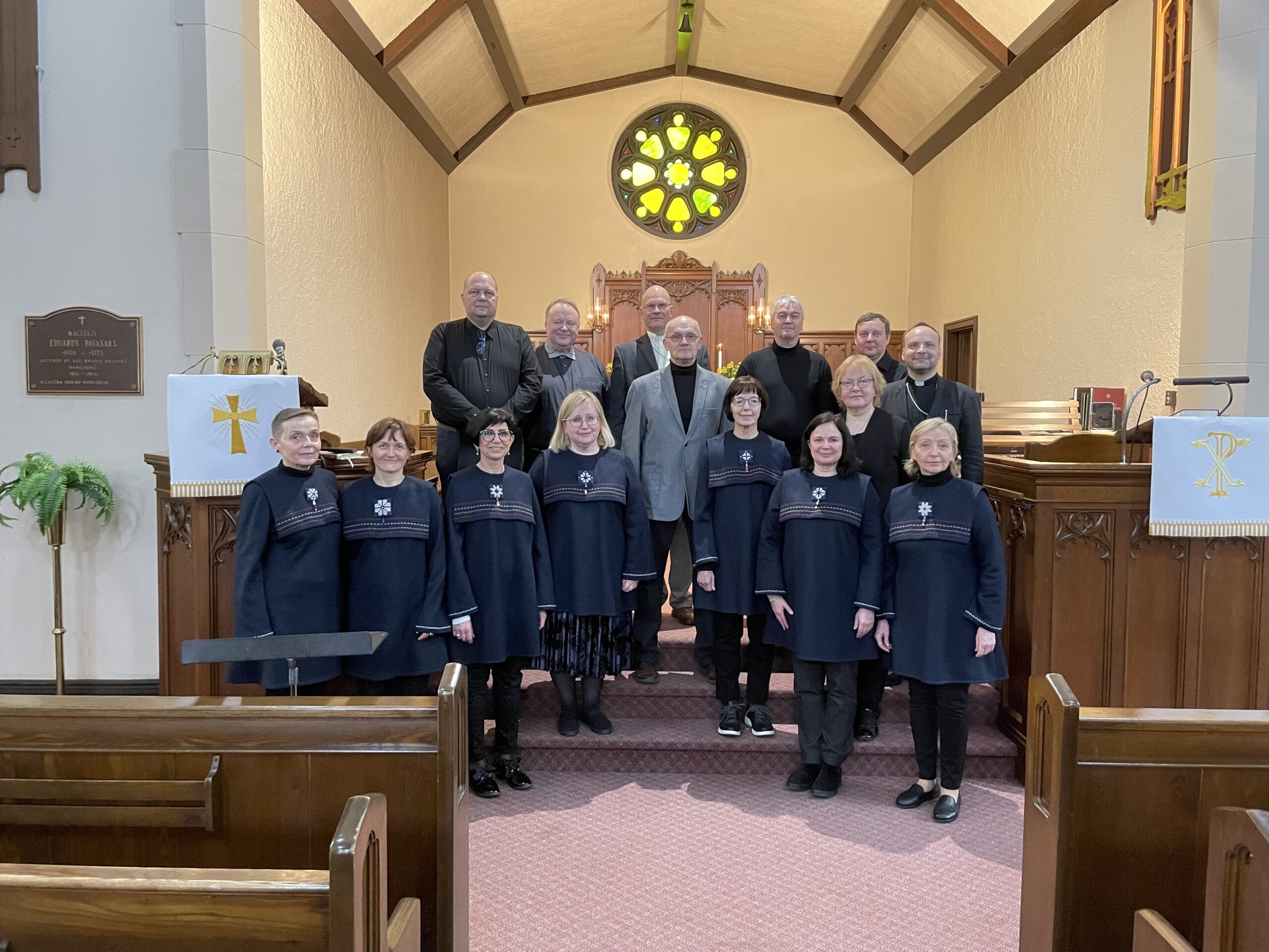 Meie reisi algusele seadis ootamatult „kaikaid kodarasse“ lennukompanii, kes otsustas jagada meie väikese 13 liikmelise grupi kolmeks, nii et me jao kaupa kolme päeva jooksul Torontosse jõudsime. Igasugustele sekeldustele ja ebamugavustele vaatamata olime siiski 23.aprilliks kui üks mees valmis sõitma oma esimesele esinemisele Hamiltoni First Estonian Lutherian Church´i, kus meid ootasid nii Läti kui ka Eesti kogudus. Koguduse õpetaja Davis Kaneps tervitas kokkutulnuid nii läti, inglise kui ka väheses eesti keeles ning nimetas teenistust sümboolselt „liivlaste“ jumalateenistuseks. Samuti tervitas ja luges Luuka evangeeliumit eesti ja inglise keeles meie kodukiriku õpetaja Arho Tuhrku. Õp Tuhkru oli alati meie koori saatmas erinevatel etteastumistel, kus ta tutvustas nii koori kui ka koori poolt ettekantavaid laule nii eesti kui ka inglise keeles.