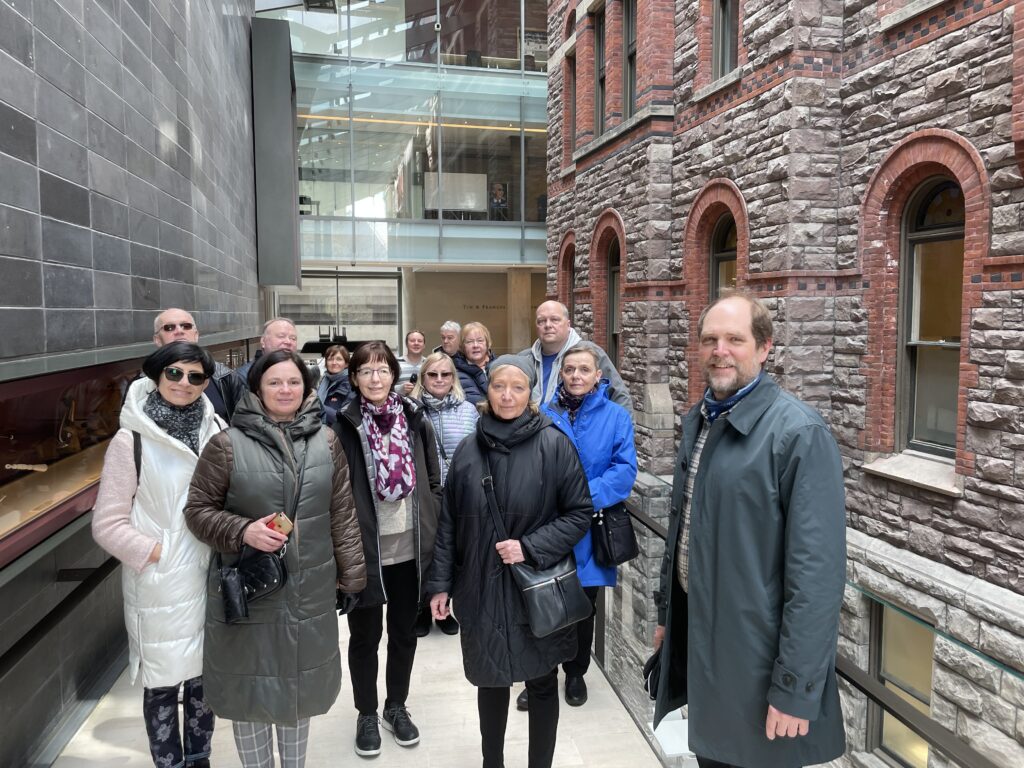 Peale tuuri ülikoolilinnakus võttis meid vastu Väliseesti Muuseumi ehk VeMu juht ning sealse kogukonna kultuurimälu hoidja pr Piret Noorhani, kes tutvustas meile muuseumi ja selle arhiivi ning ajalehe Eesti Elu ruume ja tegemisi. Suur tänu arhivaar Piret Noorhanile ja teistele „mälu“ hoidjatele!